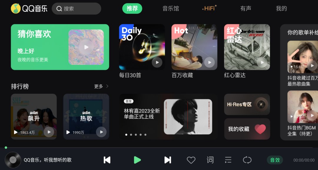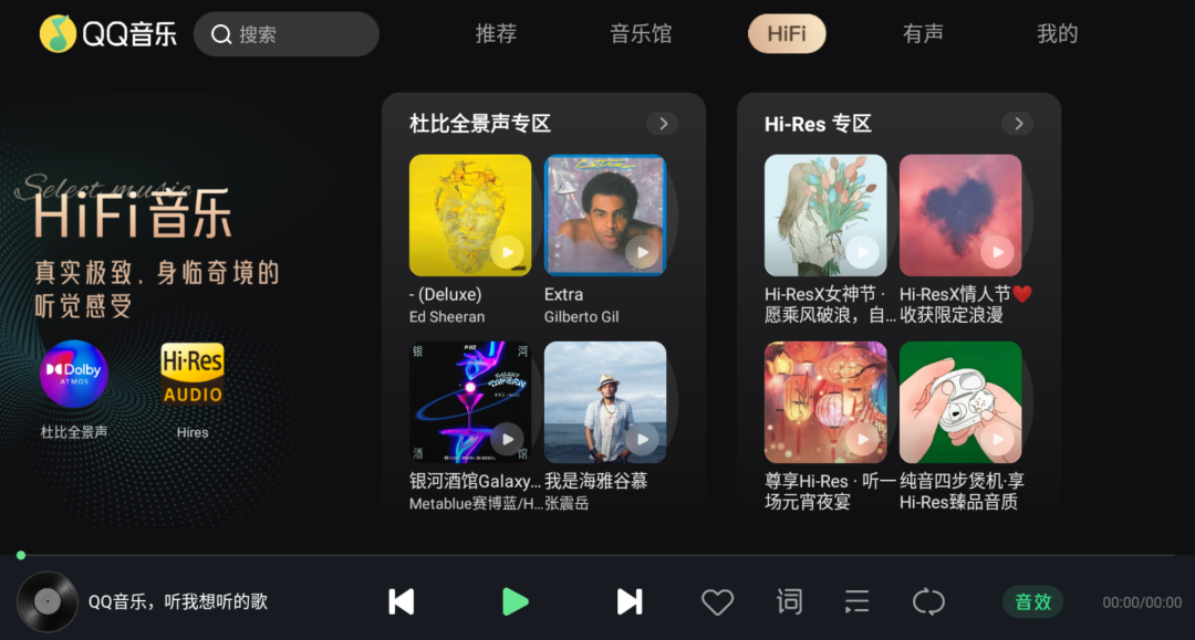 音质方面,新版本新增了杜比全景声专区和Hi-Res专区,其中杜比全景声专区只对超级会员开放,而Hi-Res专区则是会员专享,拥有百万高品质音乐。