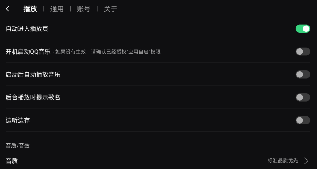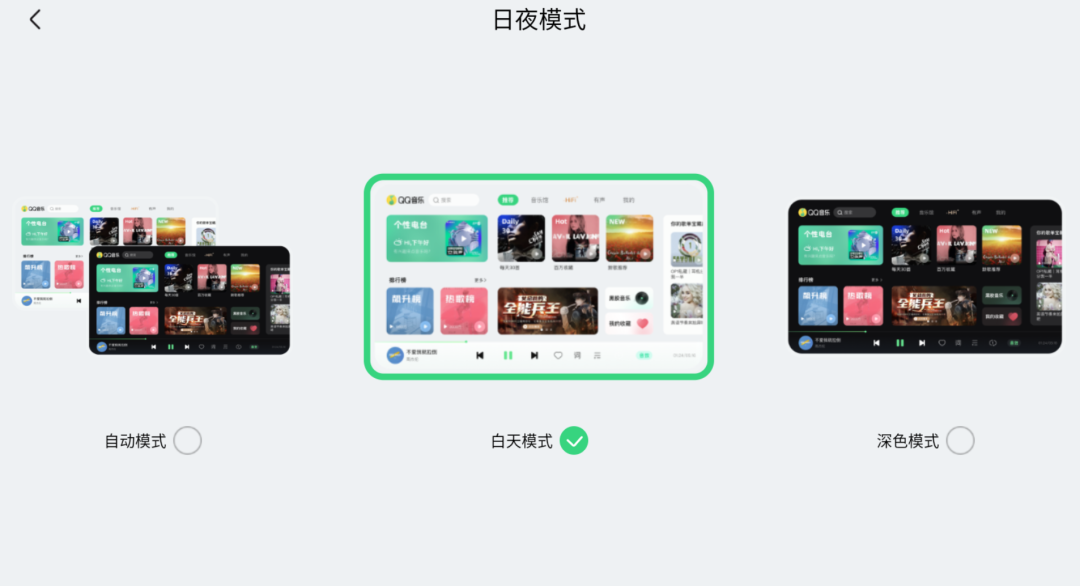新增“日夜模式”、“后台播放时展示歌名”、“状态栏显示设置”、“优先显示本地歌曲内置图片”。